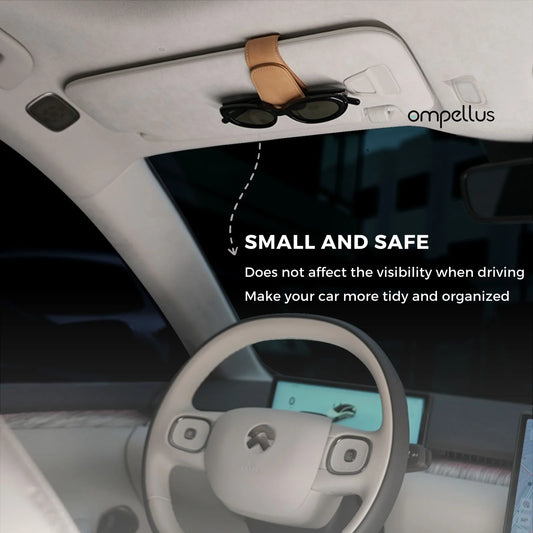 • Magnetic Suede Leather Sunglass Holder, Eyeglass Hanging Clip for Car Sun Visor, Car Accessories (Beige)